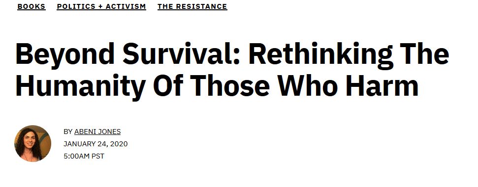 A question I keep bumping into is: what the hell do we do with people who cause harm? Well in looking for a book or article to help me delve down into this question I found this review of “Beyond Survival: Rethinking the Humanity of Those Who Harm” (a title that really could go either way) go into my shopping basket. The jury is out because I have three books I’m reading before it but I’m just glad that so many people are our here asking the question of how we deal with abusers without dehumanizing them. Not because I have some great sympathy for abusers but because they’re still people and I believe very strongly in transformative justice. How can we safely do that without re-traumatizing people? Without damaging victims? You cannot make every abuser stand outside of society and you can’t let people who abuse back in without having them do the hard work but right now we’re in an uneasy holding pattern where either we don’t hold people accountable at all or we hold people accountable for the rest of their lives without any space for allowed reform and no tools to change their behavior so maybe this book will have some insight on some other paths.