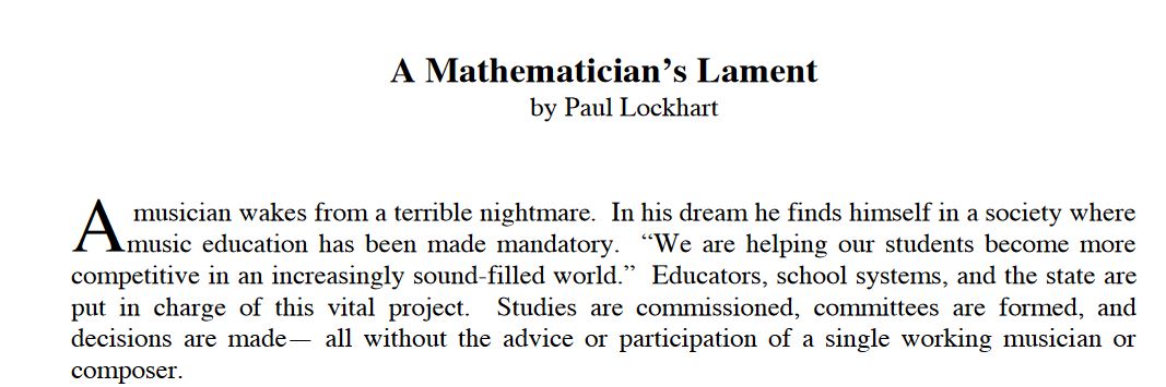 I have absolutely no idea how I found this fantastic paper on the reasons why math education is so ineffective and frustrating. It’s a paper that I suppose was published on the Mathematical Association of America’s website at some point or another but since I don’t just trawl around math sites on the regular I’m sure I saw this in a tweet or someone mentioned this paper off hand and I looked it up.