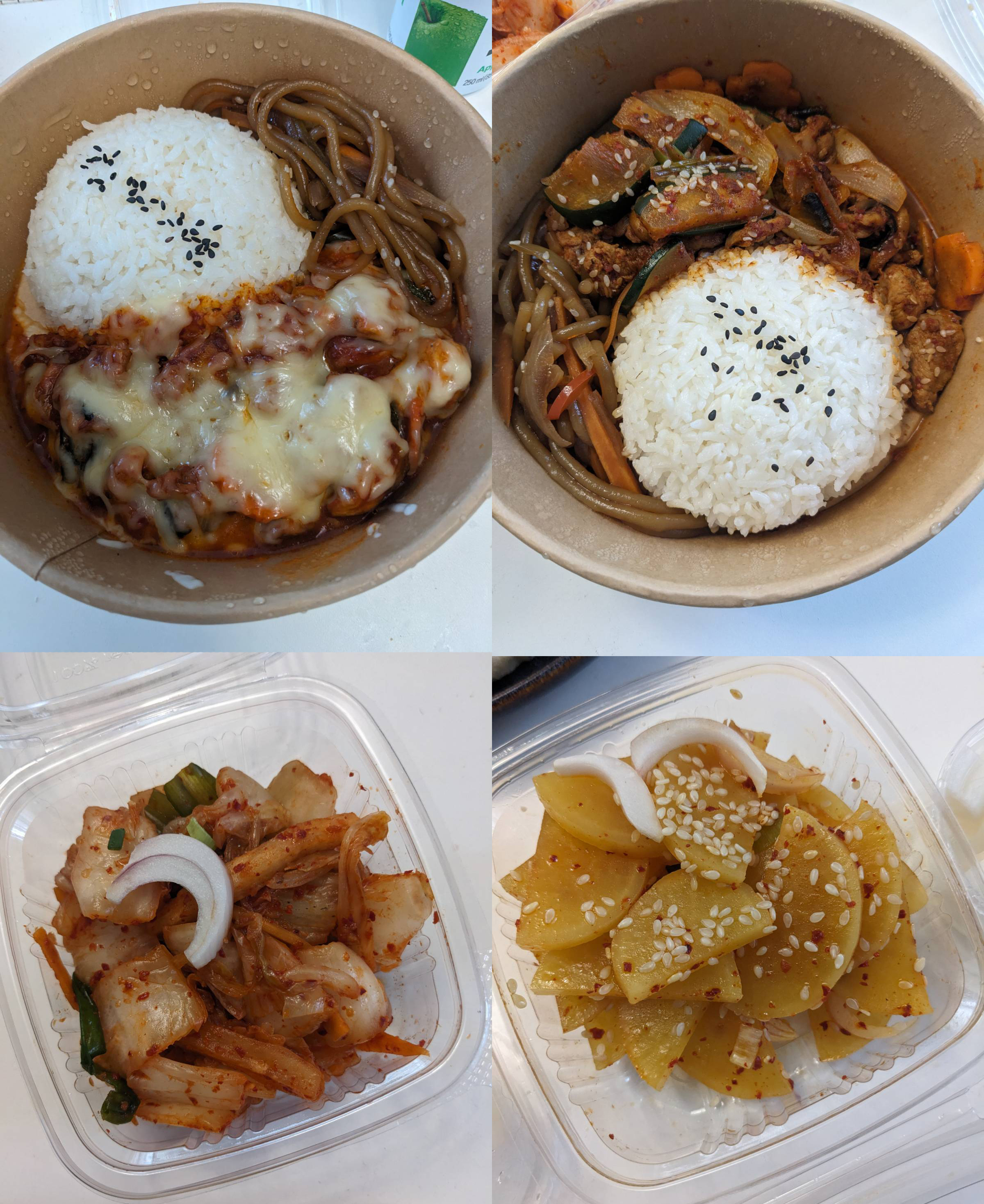 We are so lucky to have two actually very good Korean takeout places in Tallinn and I’d never tried this one before but I’m super glad we did! We got Cheese Chicken Galbi, (Chicken) Jeyuk Bokkeum, kimchi and danmuji. Personally I’m not a huge fan of cheese chicken galbi because I find it oddly sweet and a little weird but I do love jeyuk bokkeum which is just the right mix of sweet and spicy with just enough kick that you can’t eat it forever. I don’t like kimchi because I find it too sour and bitter but my husband loves it. What I do love is danmuji (which I think of takuan still, sorry Korea). I don’t like regular pickled radish anywhere near as much but danmuji has a better balance of sweet and salty, it’s nowhere near as acidic as most pickled things.