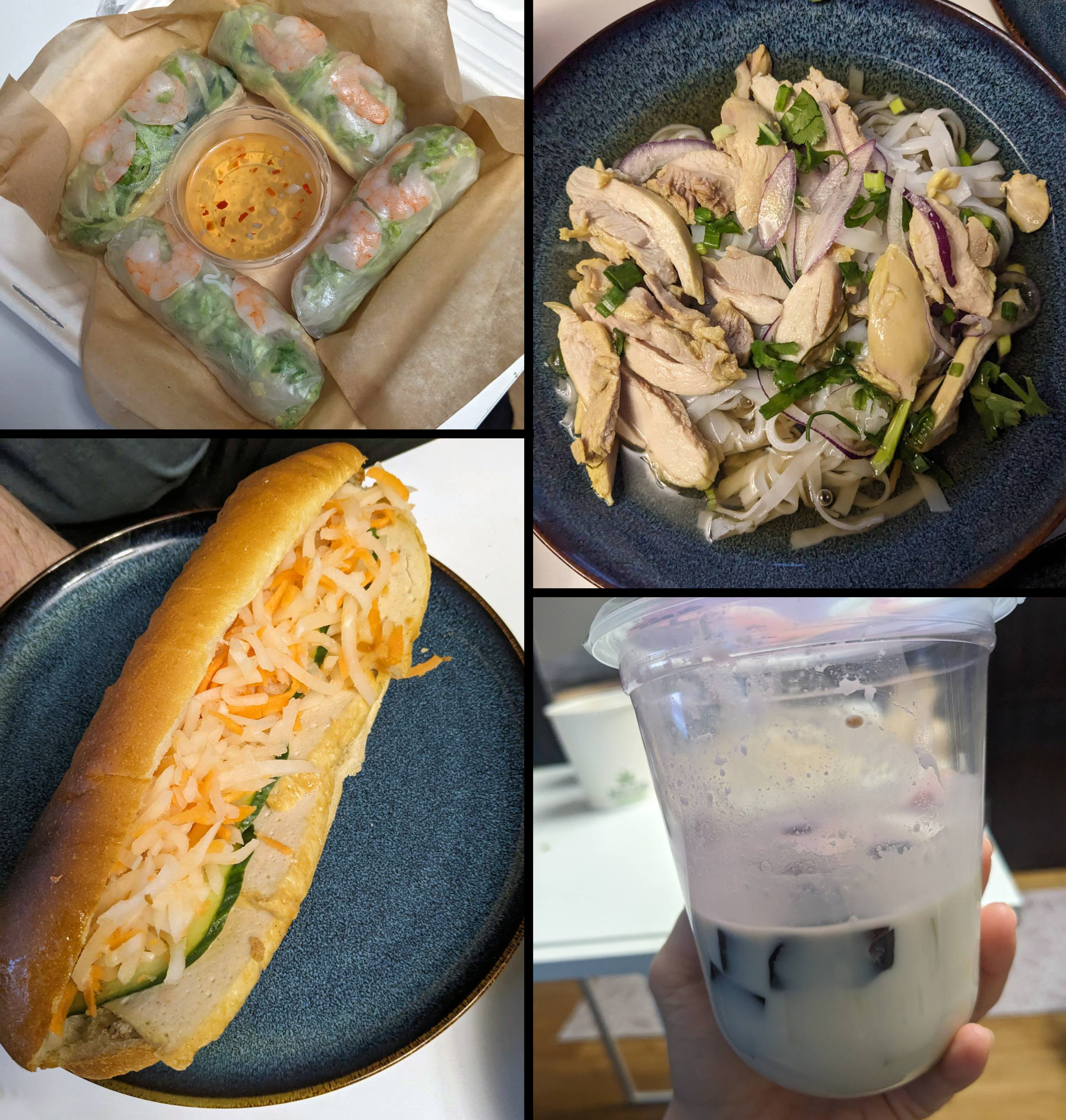 I took the easy route and ordered Vietnamese food, specifically: Bánh mì, Gỏi cuốn, phở gà, and Chè. We don’t have a ton of Vietnamese specific ingredients available here, it’s really hard to get a hold of the majority of fresh greens, various forms of coconut, mung beans, tapioca things and so on and to make all of this myself would have been a real pain in my butt.